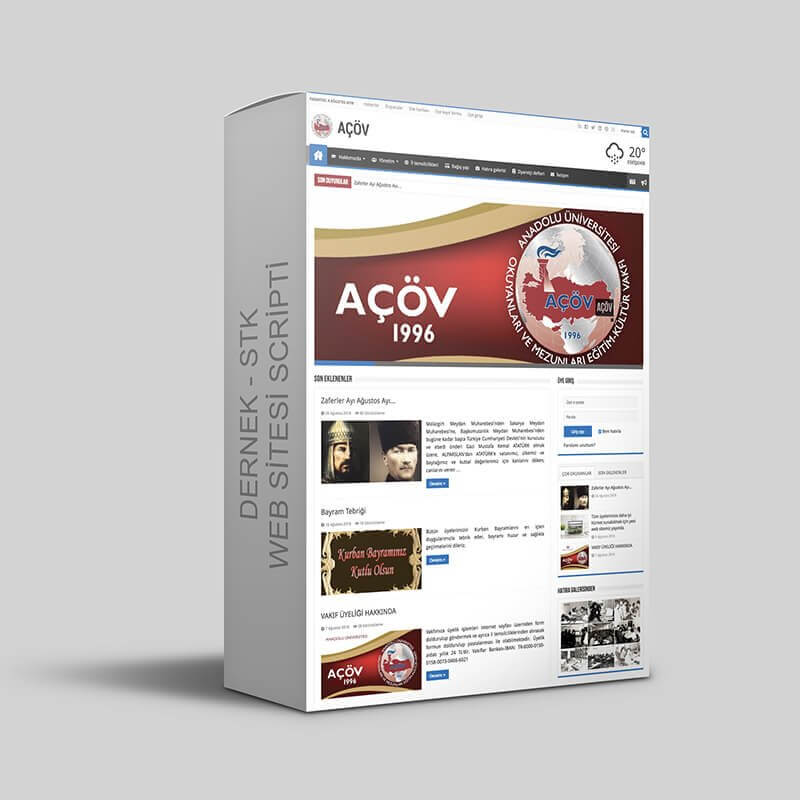 Dernekler ve sivil toplum örgütlerinde kullanılmak üzere tasarlanmış özel web sitesi script’tir.