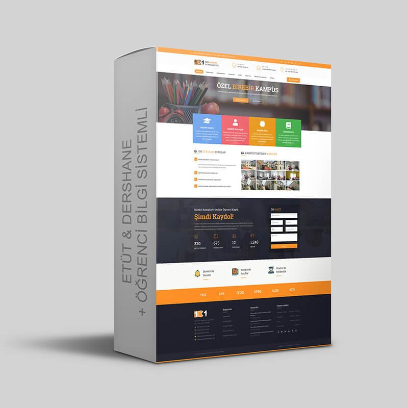 Etüt ve dershane scripti; özel okullar, dershaneler ve etüt merkezleri için özel olarak tasarlanmış ve kurumun tüm ihtiyaçlarını karşılayabilecek web sitesi scripti dir.